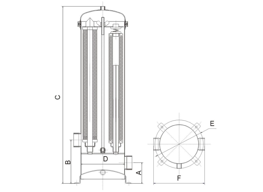 | Model | A mm | B mm | C mm | D mm | E mm | F mm | Inlet/Outlet |